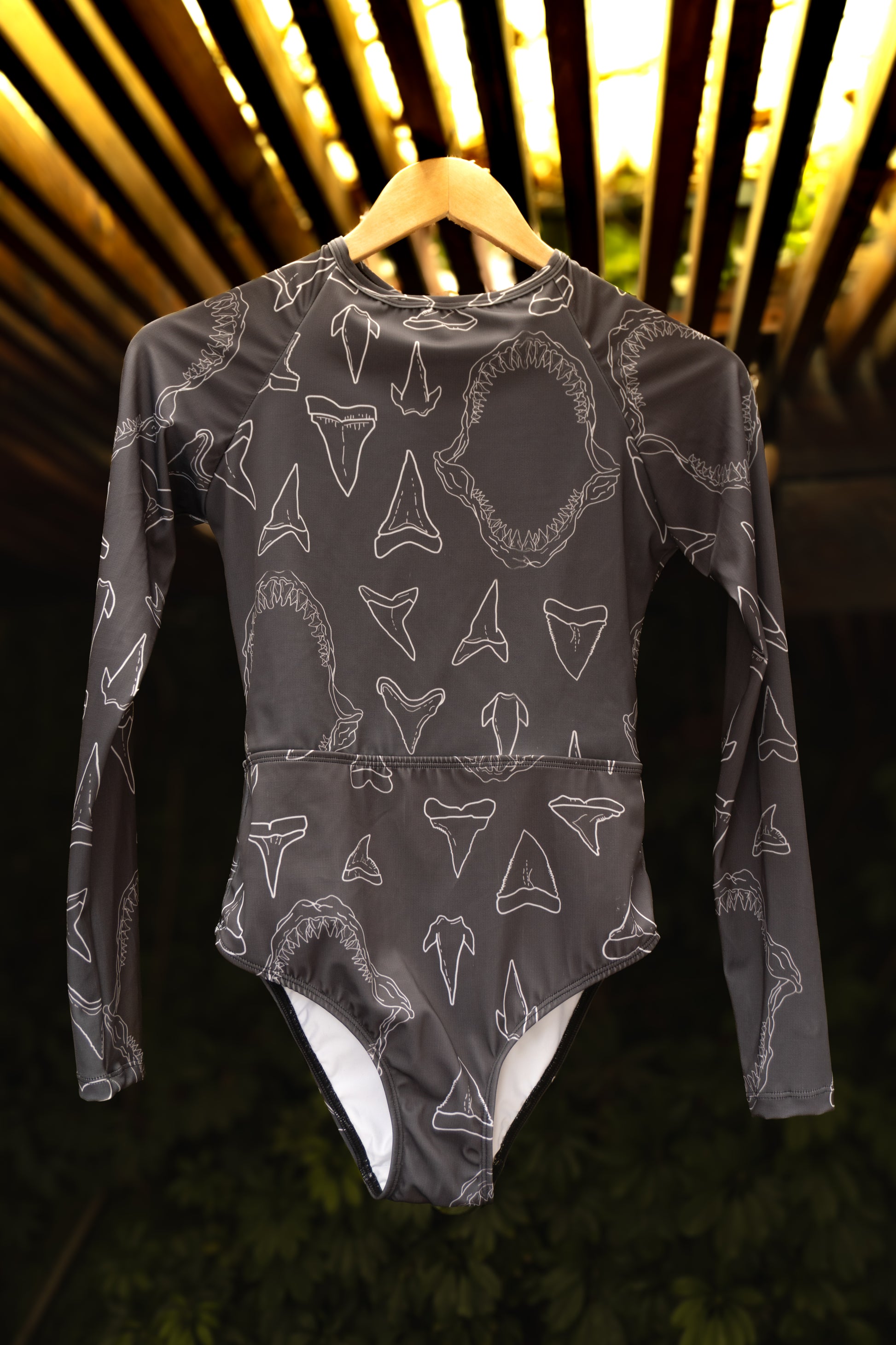 BlackShark no pasa desapercibido. Su base negra profunda se interviene con un patrón de mandíbulas y dientes de tiburón, creando una pieza gráfica fuerte, directa y con identidad. No es un estampado sutil. Es una declaración.
